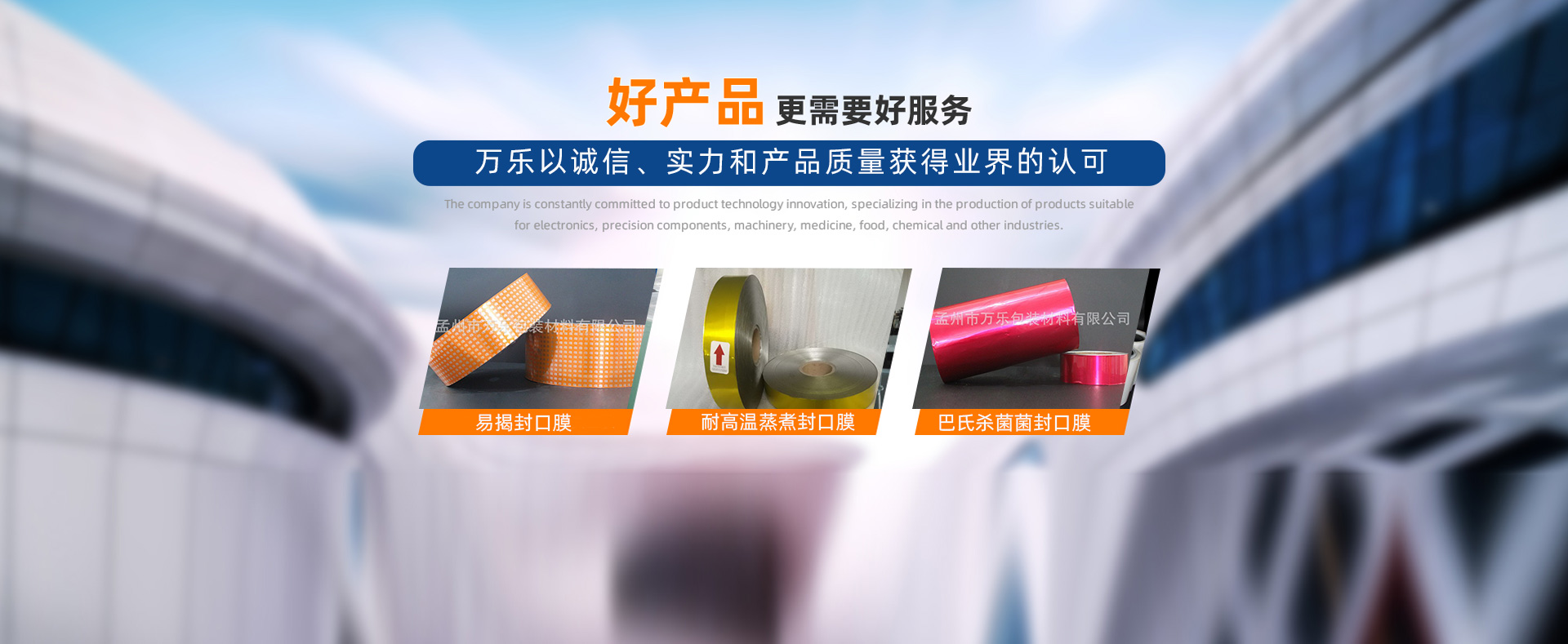 - 孟州市萬樂包裝材料有限公司是一家生產鋁箔復合膜、PE復合膜、CPP復合膜、鋁箔蓋、豆奶粉膜、沙琪瑪包裝、膜食品復合膜等產品的公司?! ∶现菔腥f樂包裝材料有限 公司擁有完整、科學的質量監測管理體系。 孟州市萬樂包裝材料有限公司以誠信、實力和產品質量獲得業界的認可?! g迎各界朋友蒞臨參觀、指導和業務洽談。......了解更多>>